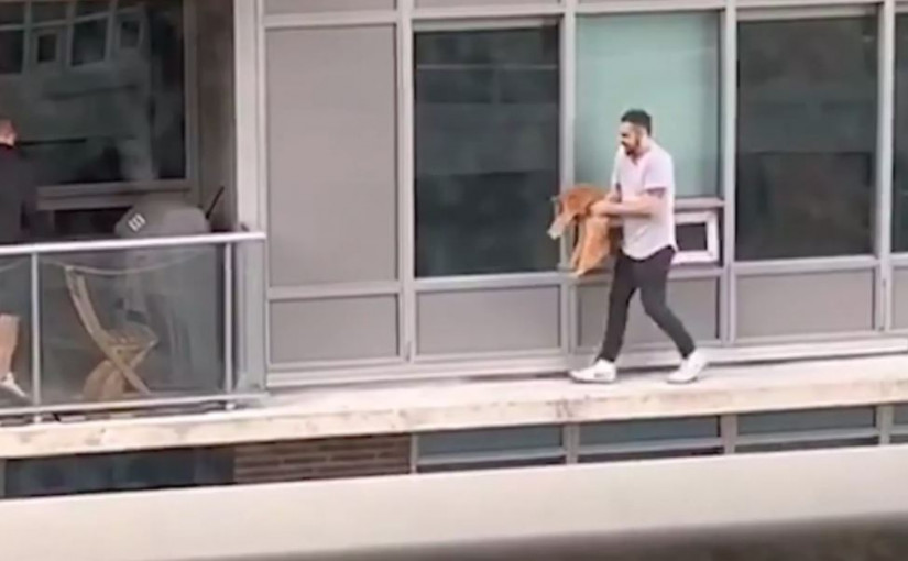 一名多倫多男子爬出住所露台,然後沿柏文大廈牆身外步行至隔離單位,為的是捉回他所養的貓;他的行為十分大膽及危險,有市民將過程拍下來,並視頻放上網,之後已引起不少人討論。