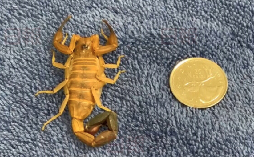獸醫說,這種蠍子就是鬥士一樣,你不理牠就沒事,你若鬥牠,牠會擊倒你。這隻蠍子已經懷孕了,牠將被送往維多利亞昆蟲園。