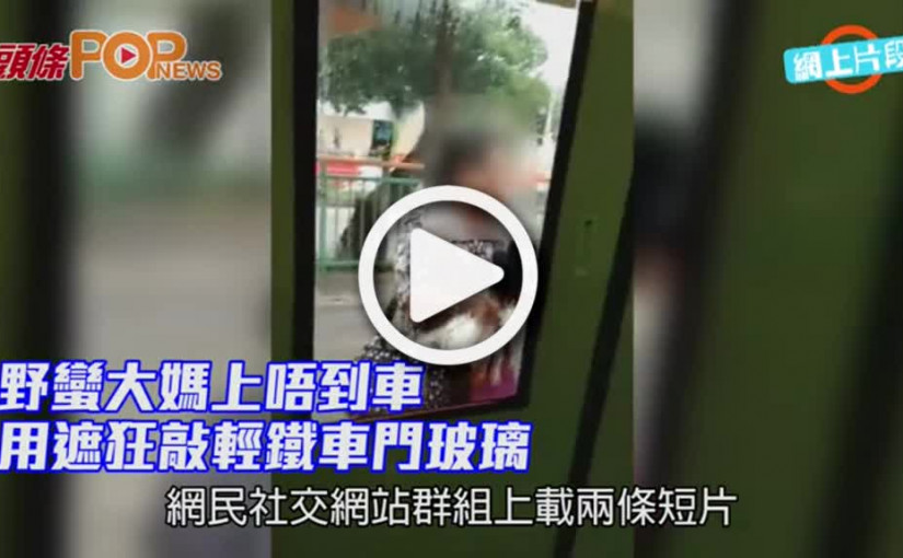 野蠻大媽上唔到車 用遮狂敲輕鐵車門玻璃