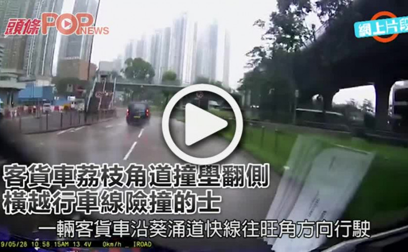 客貨車荔枝角道撞壆翻側 橫越行車線險撞的士