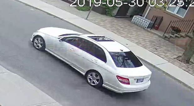 警方說,5月30日下午4點左右,嫌疑男子被見到開一輛白色四門Mercedes Benz C系汽車,在Yonge Street 交 St. Clair Avenue地區一個居民區快速駛過。一名男子和一名女子告訴他開慢點。