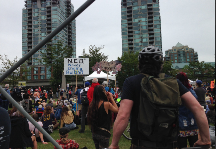 在周日的集會活動上,數百人簽署聲明,將參與任何阻撓輸油管的行動。