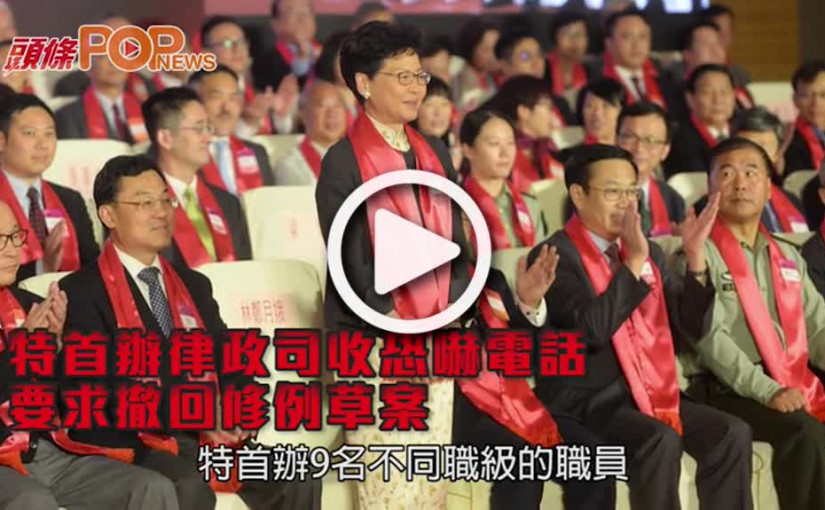 特首辦律政司收恐嚇電話 要求撤回修例草案