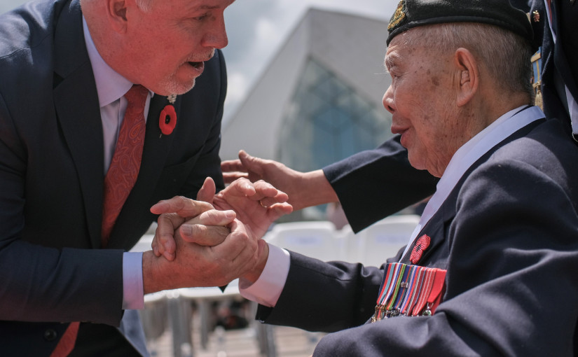 賀謹說:「很榮幸參加朱諾灘的儀式,紀念卑詩省和加拿大的士兵,他們為我們今 天享有的自由而勇敢地奮鬥。我們絕不能忘記我們的退伍軍人,以及他們的家人和摯 愛所作出的犧牲。」