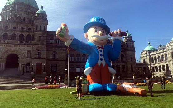 加拿大納稅人聯盟(Canadian Taxpayers Federation,簡稱CTF)周三在卑詩省喬治太子市(Prince George)放置了一個30呎高的巨型氣球人,抗議省政府繼續讓卑詩保險公司(ICBC)壟斷市場,導致本省司機須要繳付全國最高昂的汽車保險費用。