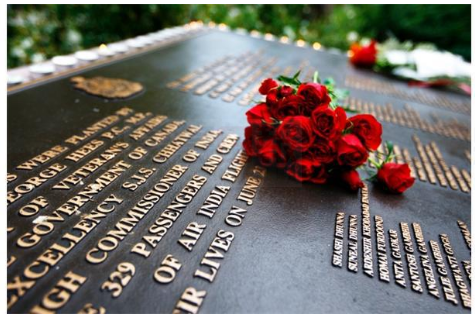 「三十四年前,印度航空一班由加拿大飛往印度的航機發生爆炸,消息震驚全球。這次事件仍然是加國歷史上最嚴重的恐怖主義行為,造成329名乘客及機組人員死亡,當中包括280名加拿大人。」