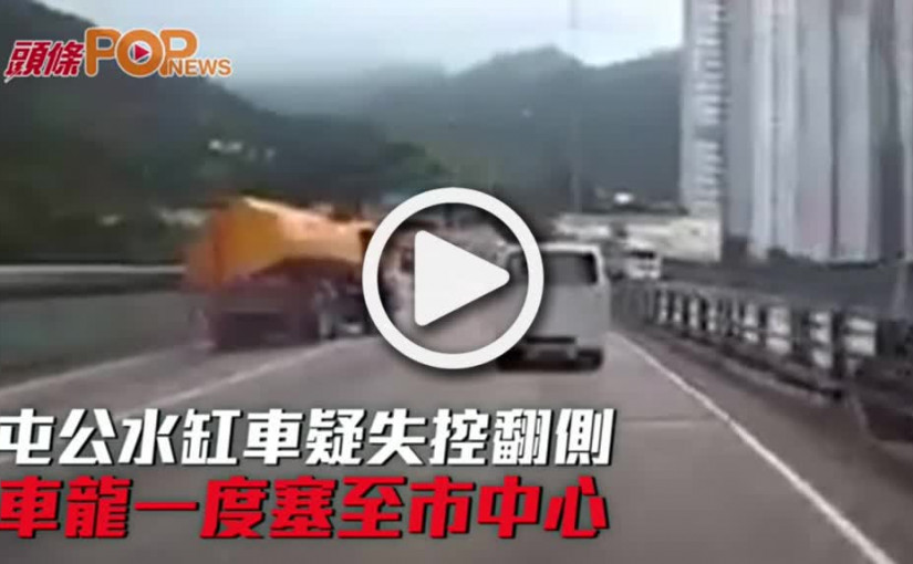 屯公水缸車疑失控翻側 車龍一度塞至市中心