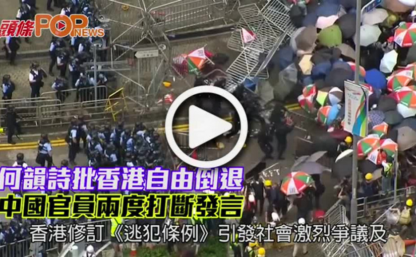 何韻詩批香港自由倒退 中國官員兩度打斷發言