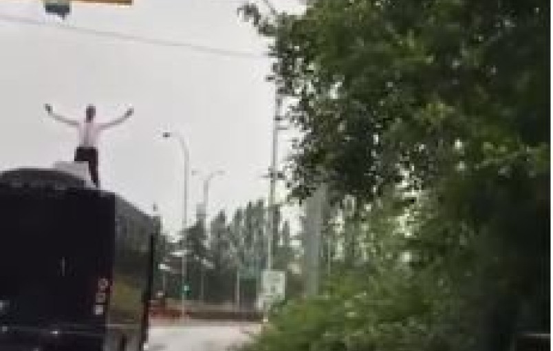 據一段在社交媒體Instagram發放的視頻顯示,一名男子周二晚(7月9日)站在一部行駛中的派對巴士上,於列治文出現 ,險象環生。