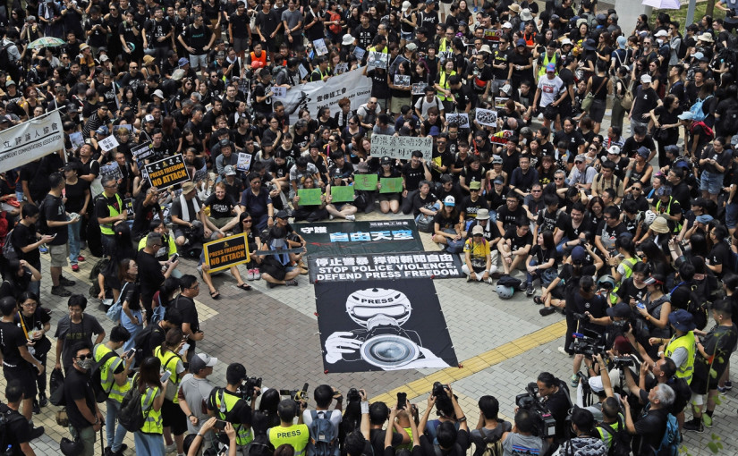 7個傳媒工會周日早上發起沉默遊行,抗議警方在近期多次反對修訂《逃犯條例》示威活動中阻撓採訪、妨礙採訪自由,要求行政長官林鄭月娥捍衛新聞自由,記協表示有超過1500人參加。
