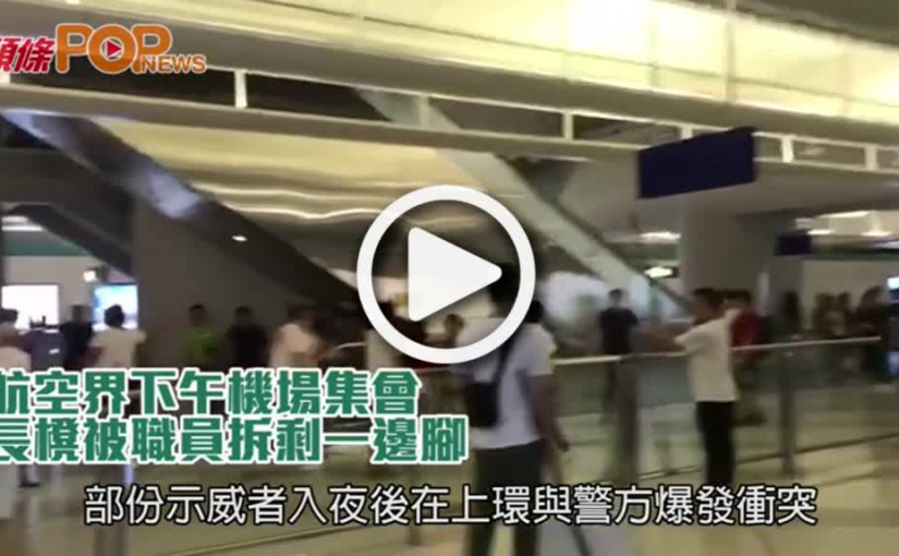 航空界下午機場集會 長櫈被職員拆剩一邊腳