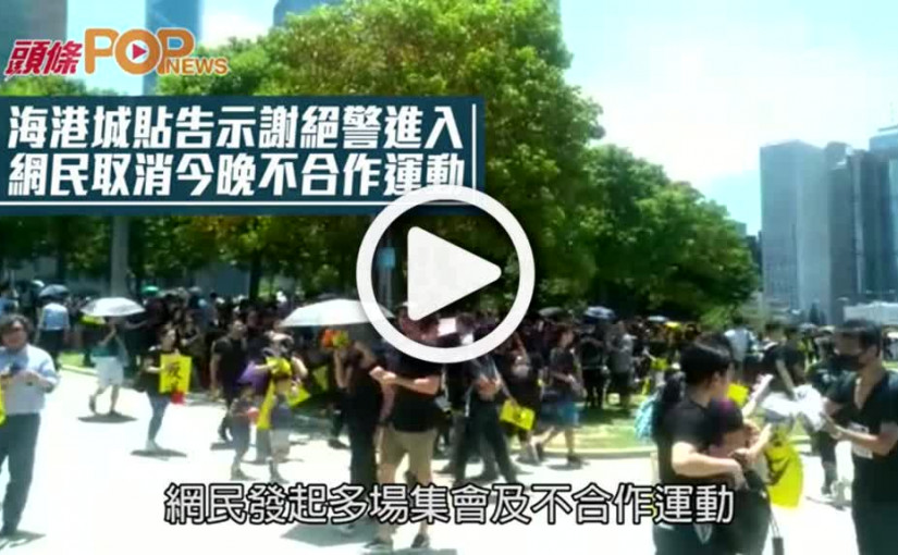 海港城貼告示謝絕警進入 網民取消今晚不合作運動