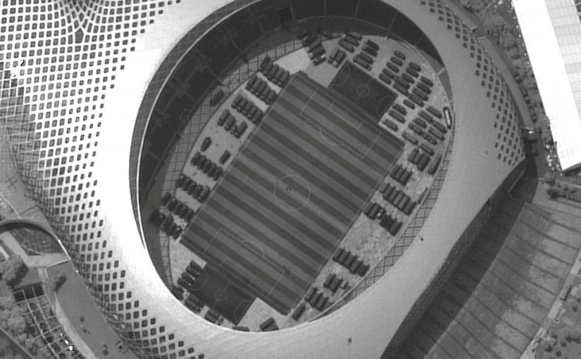 根據路透社獲得的衛星圖片顯示,有大量軍隊已集結在深圳灣運動場內。