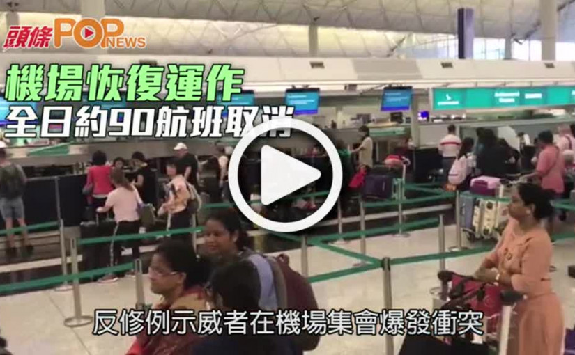 機場恢復運作 全日約90航班取消
