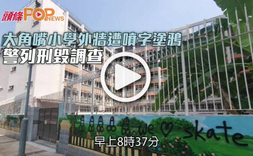 大角嘴小學外牆遭噴字塗鴉 警列刑毀調查