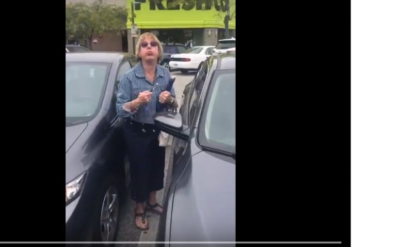 當徐太取車時,發現她的車位前面的汽車越界,並碰到她的汽車。當白人女司機返回取車時,徐太告訴她,她的車似乎踫到自己的汽車。