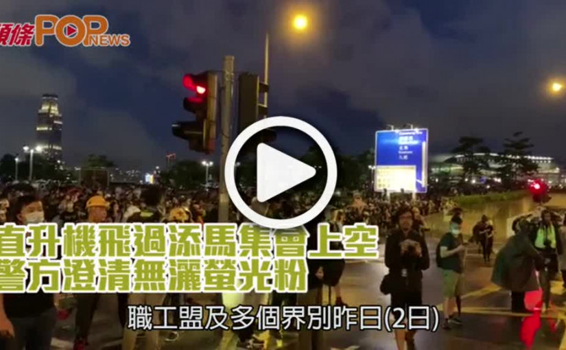 直升機飛過添馬集會上空 警方澄清無灑螢光粉