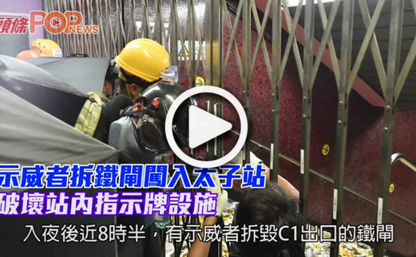 示威者拆鐵閘闖入太子站 破壞站內指示牌設施