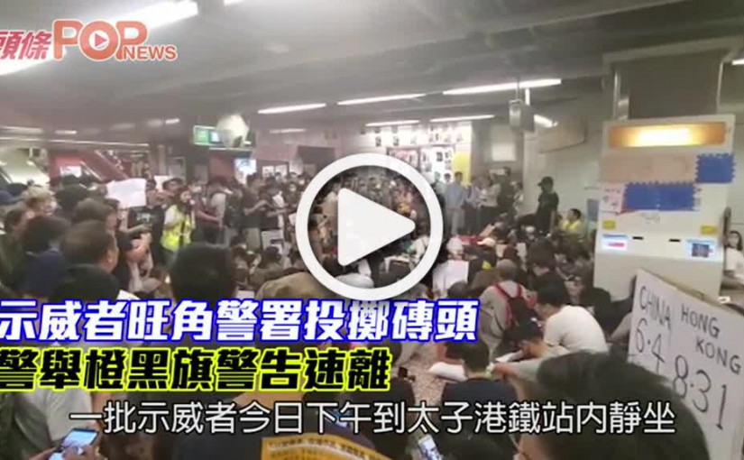 示威者旺角警署投擲磚頭 警舉橙黑旗警告促離開