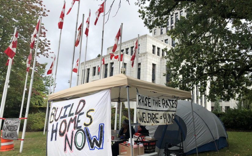 從上月溫哥華市府頒布驅逐令至今,市中心東區奧本海默公園(Oppenheimer Park)露宿者問題還未解決,市長甘迺迪(Kennedy Stewart)上周希望說服公園局將公園管轄權暫交市府,以「清理」公園。有社運人士周一在市府外搭營露宿,就市府對無家可歸者的處理方式表達不滿。