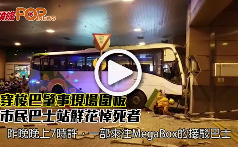 穿梭巴肇事現場圍板 市民巴士站鮮花悼死者