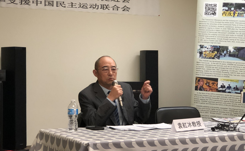 活動由溫哥華中國民主自由人權促進會主辦,溫哥華支援民主運動聯合會合辦,吸引數十位市民到場交流。袁紅冰現場與大家分享了他對香港反送中運動的見解,其中的啟發和支援香港民主運動的計劃。