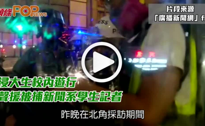 浸大生校內遊行 聲援被捕新聞系學生記者