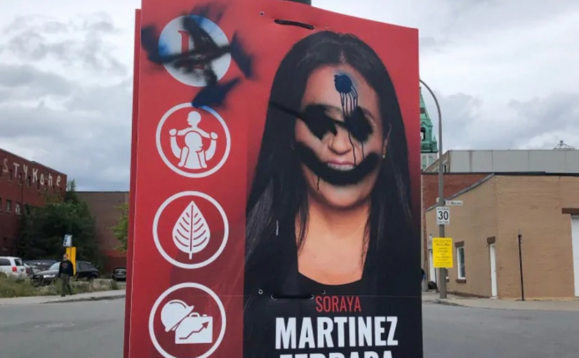 自由黨霍切拉加選區(Hochelaga)協會早前發現,候選人費拉達(Soraya Martinez Ferrada)的競選宣傳牌,至少有6個遭人塗上納粹標誌。
