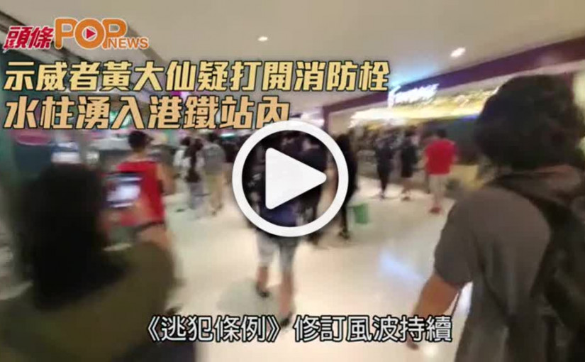 示威者黃大仙疑打開消防栓 水柱湧入港鐵站內