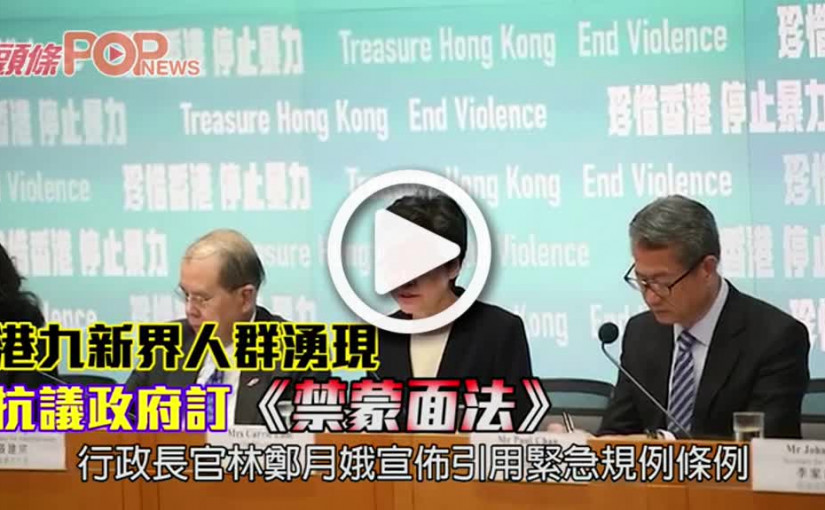 港九新界人群湧現 抗議政府訂《禁蒙面法》
