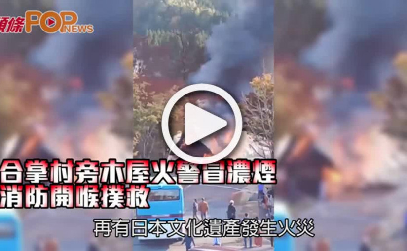 世界遺產日本白川鄉 合掌村旁木屋火警冒濃煙