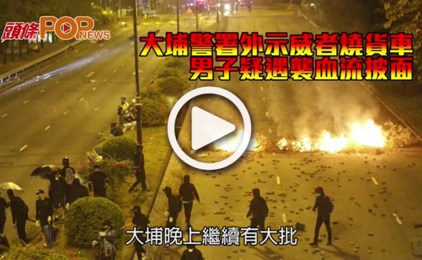 大埔警署外示威者燒貨車 男子疑遇襲血流披面