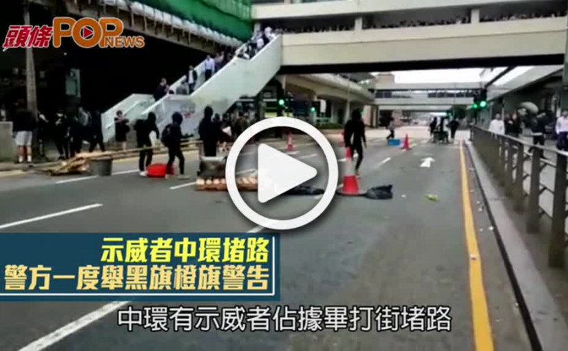 示威者中環堵路 警方一度舉黑旗橙旗警告