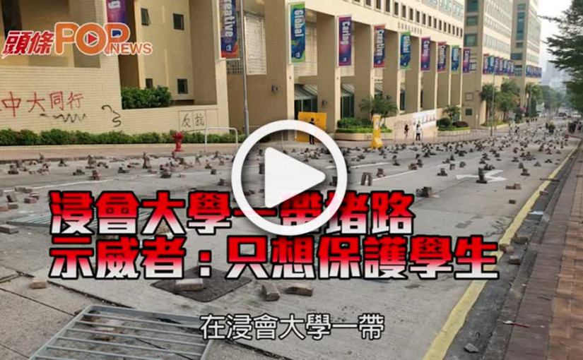 浸會大學一帶堵路 示威者 : 只想保護學生