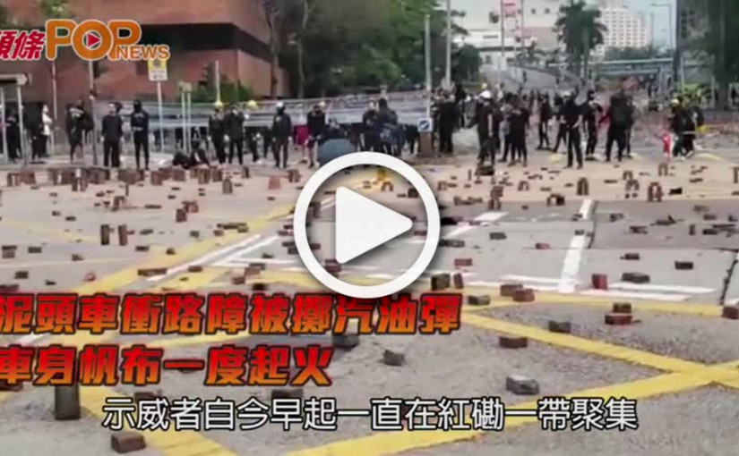 泥頭車衝路障被擲汽油彈 車身帆布一度起火