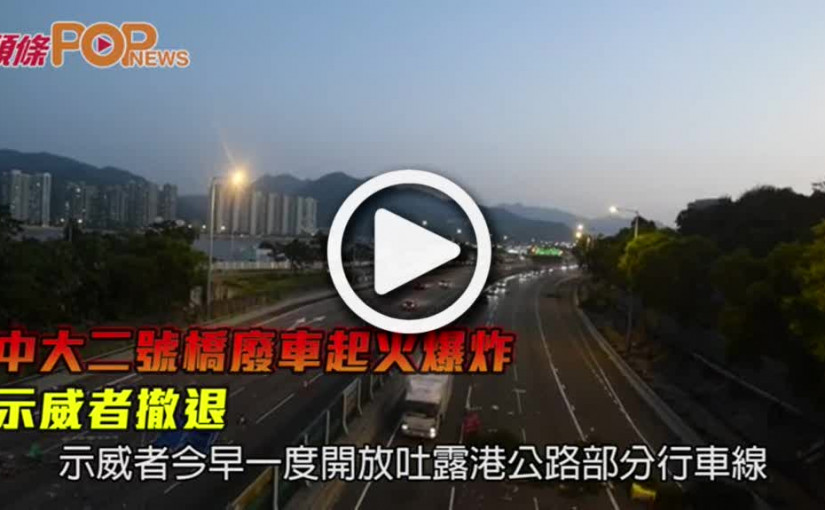 中大二號橋廢車起火爆炸 示威者撤退
