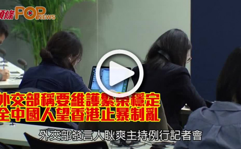 外交部稱要維護繁榮穩定 全中國人望香港止暴制亂