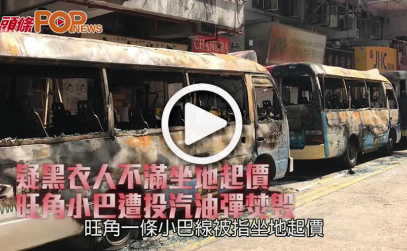 疑黑衣人不滿坐地起價 旺角小巴遭投汽油彈焚毁