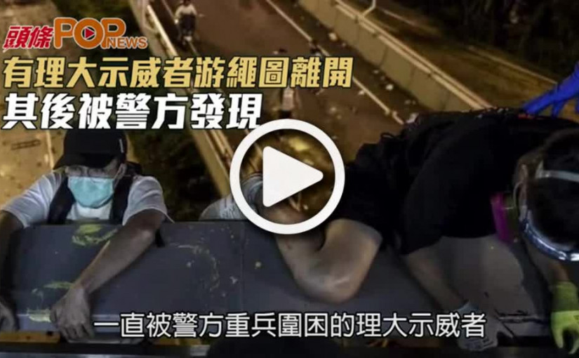 有理大示威者游繩圖離開 其後被警方發現