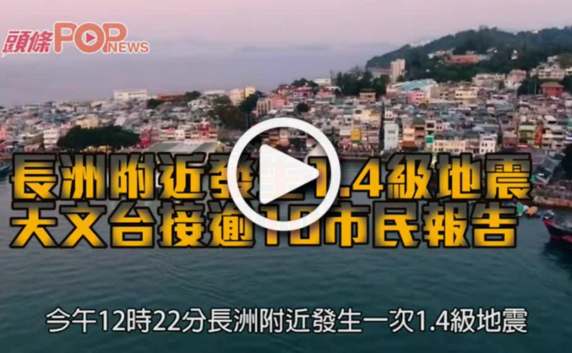 長洲附近發生1.4級地震 天文台接逾10市民報告