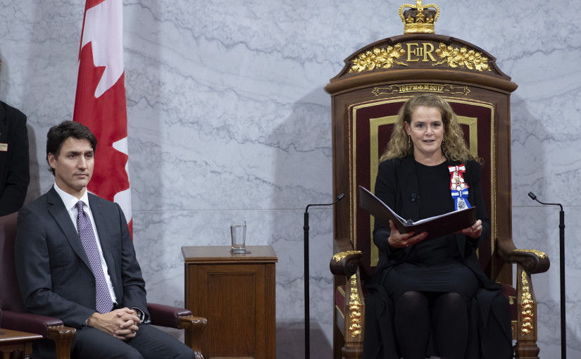 這份名為《共同前進》(Moving Forward Together)的施政報告由總理辦公室撰寫,但按照傳統,由加拿大總督帕耶特(Julie Payette)在參議院讀出。整份報告具體內容不多,但處處流露新一屆少數政府希望與其它黨派合作的意願。