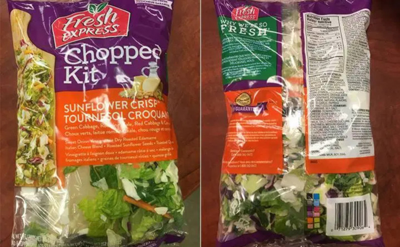 Fresh Express品牌Sunflower Crisp Chopped Kit袋裝沙律菜,受到大腸桿菌污染而需要回收。