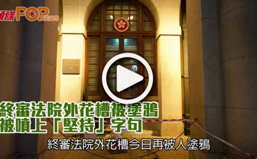 終審法院外花槽被塗鴉 被噴上「堅持」字句
