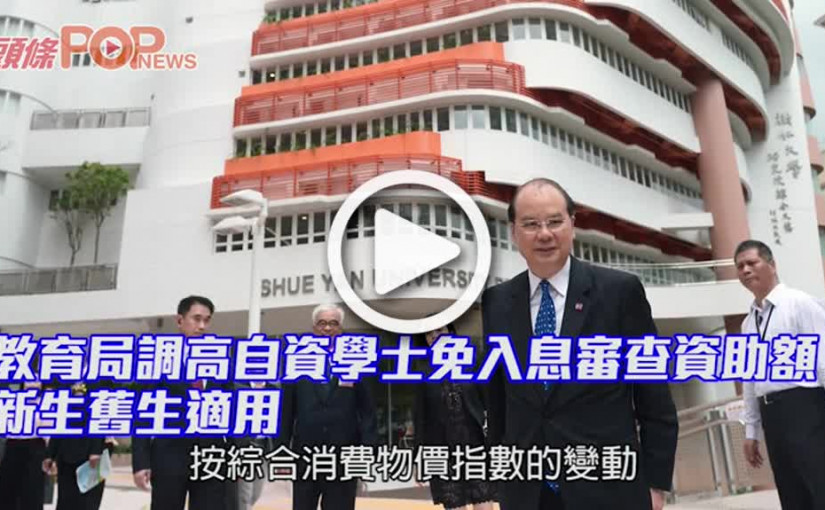 教育局調高自資學士免入息審查資助額 新生舊生適用