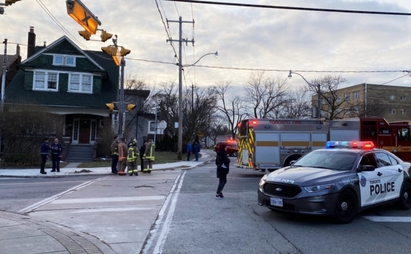 多倫多消防發表聲明,表示有消防員遇到撞車事故,已通知醫護人員及警方。
