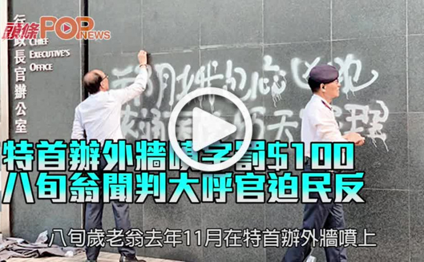特首辦外牆噴字罰$100 八旬翁聞判大呼官迫民反