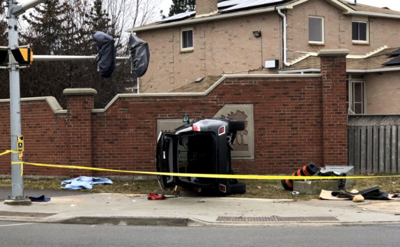 皮爾區警隊表示,周三(25日)早上大約10時,位於密西沙加Guildwood路與Eglinton大道交匯處,接報有一輛汽車失控翻轉。