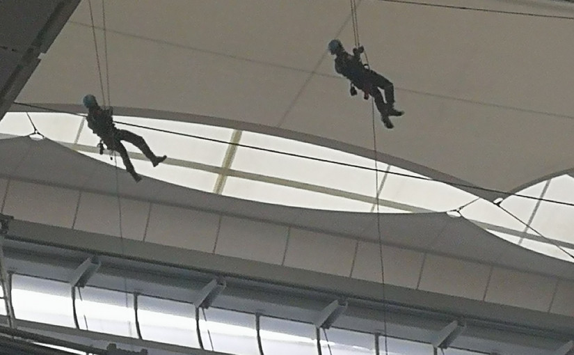 溫市重型都市搜救隊(Heavy Urban Search and Rescue)周三在卑詩體育館(BC Place Stadium)開展救援訓練演習,數十名來自溫哥華消防局的消防員以及加拿大軍隊的成員在體育館頂的橫樑上練習繩索救援技術,為日後可能發生在一些摩天大廈的緊急情況做準備。