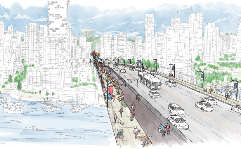 溫哥華市府周一公佈了固蘭湖街橋(Granville Bridge Connector)翻新設計方案,計劃將現有的8條行車線,改為6條,並拓寬兩旁行人道,及增加雙向單車線,改善道路安全。