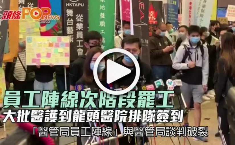 員工陣線次階段罷工 大批醫護到龍頭醫院排隊簽到